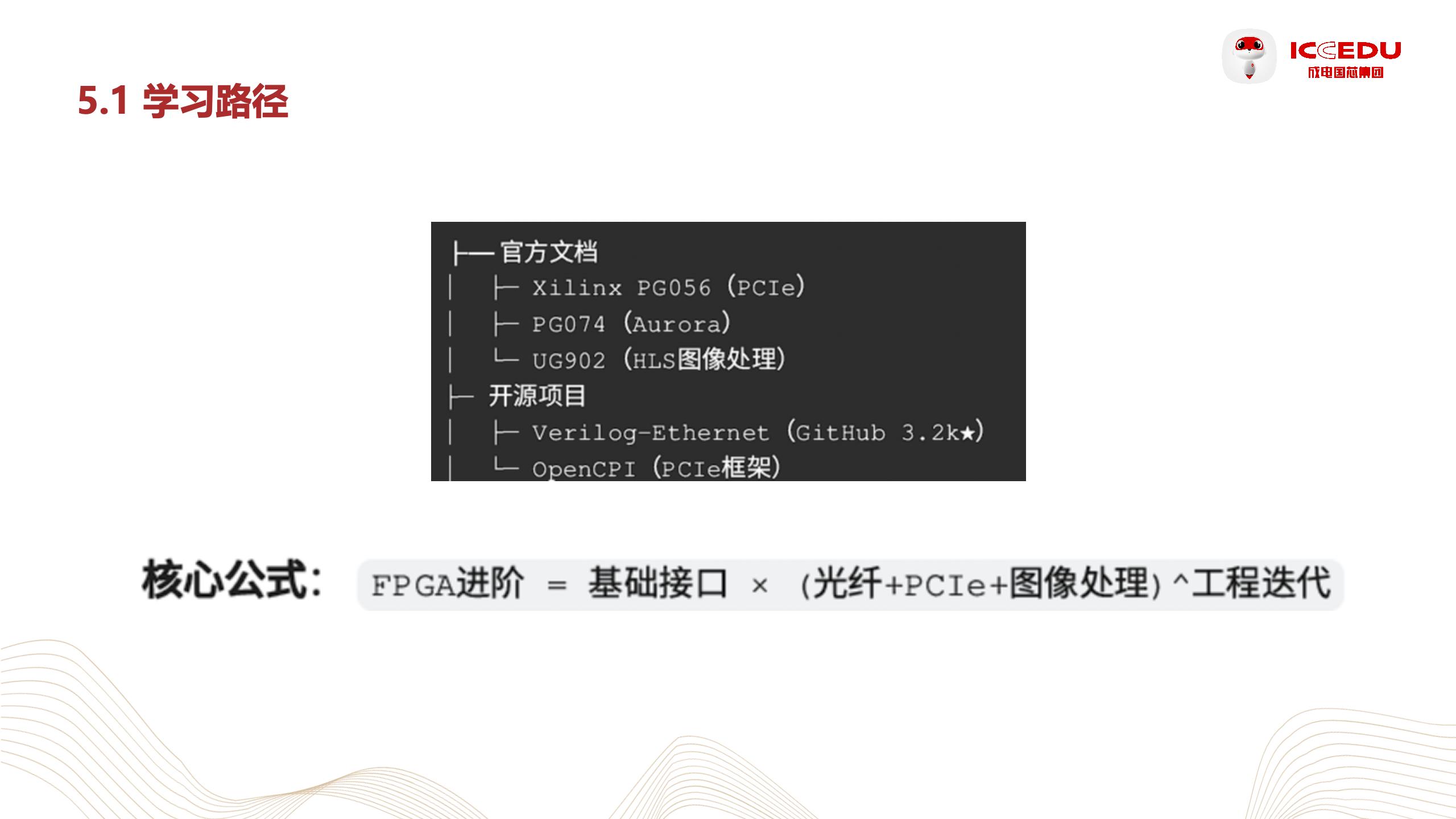 从基础接口的精准掌控,到进阶技术的壁垒突破;从跨域技术的融合创新,到职业价值的全面释放,「FPGA工程师破界之路」不仅是一条技术成长路径,更是一场关于热爱、突破与价值创造的修行。