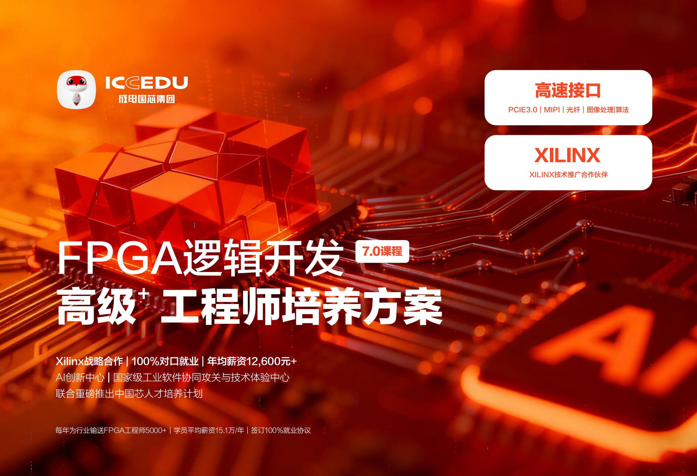 成电国芯FPGA就业班7.0课程以Xilinx技术体系为核心,深度融合行业前沿需求,构建了从基础到进阶的完整培养体系。其中,高速接口技术作为课程核心亮点,涵盖PCIe3.0、MIPI、以太网(含万兆网)等关键方向,通过“理论+实战”模式帮助学员掌握高端FPGA开发能力,助力冲刺年薪30-50万。
