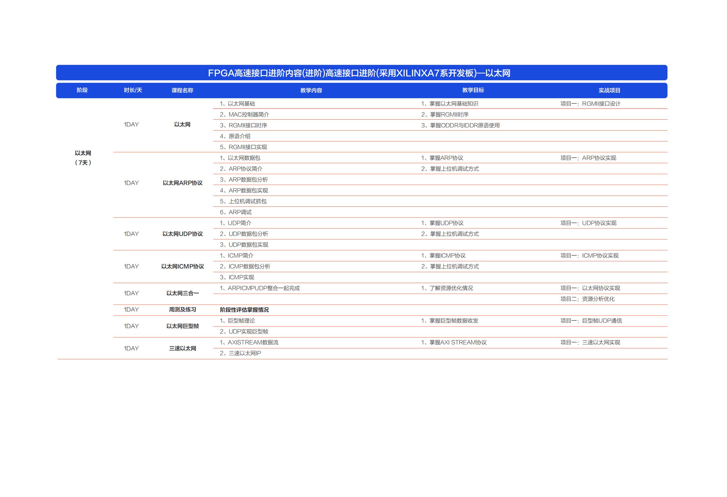 课程安排:从千兆到万兆全覆盖,结合协议栈开发与性能优化。