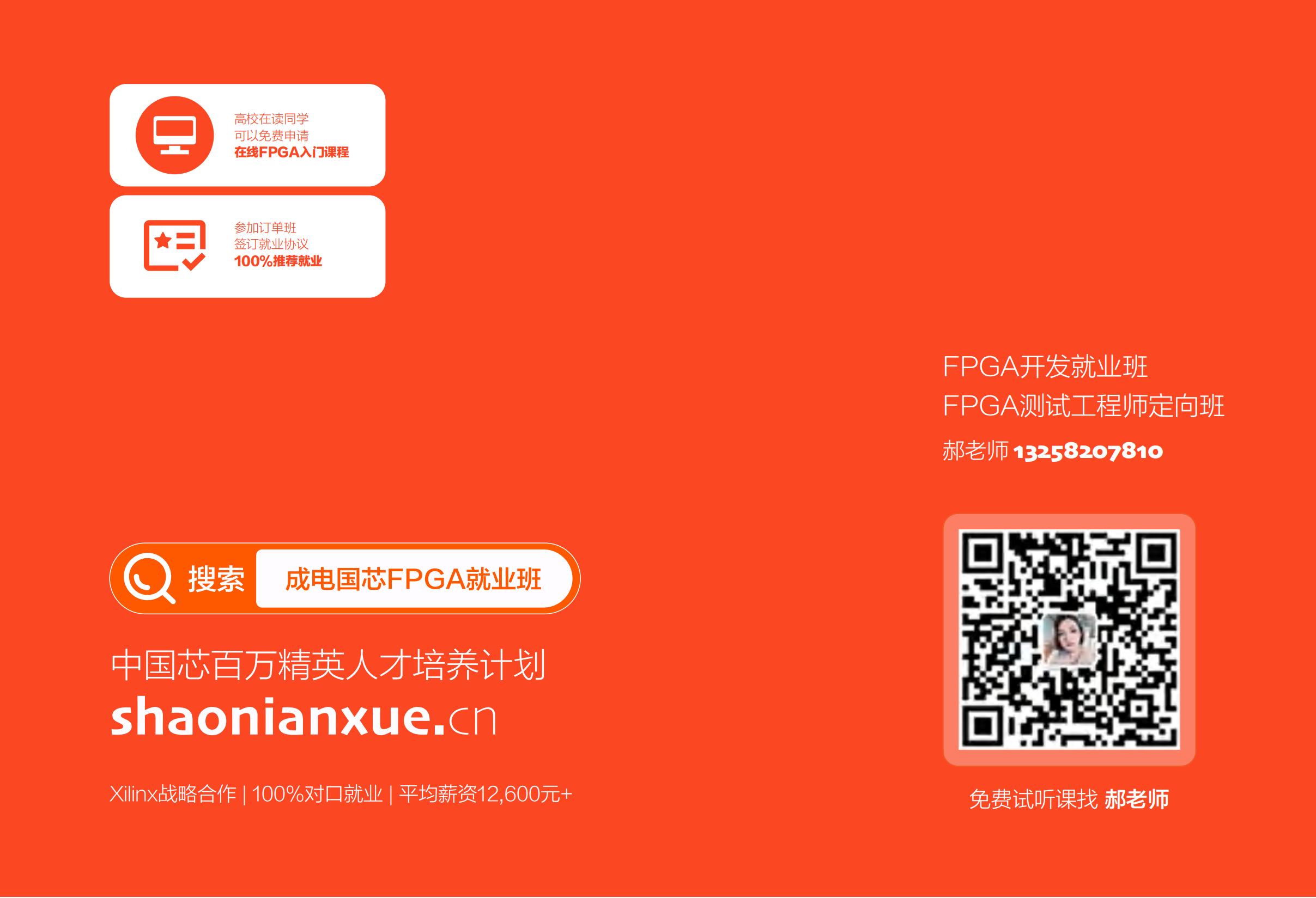 免费试听与咨询:高校在读生可申请免费FPGA入门课程,联系郝老师(13258207810)获取课程大纲与试学名额,抢占高速接口工程师赛道先机!