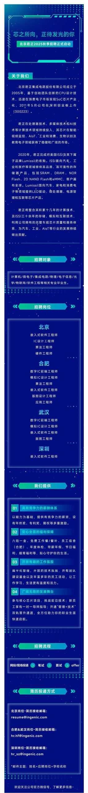 企业背景:国内RISC-V架构领导者,收购北京矽成后形成“CPU+存储”双轮驱动。核心业务:RISC-V CPU原型验证,开源指令集逻辑开发。岗位职责: