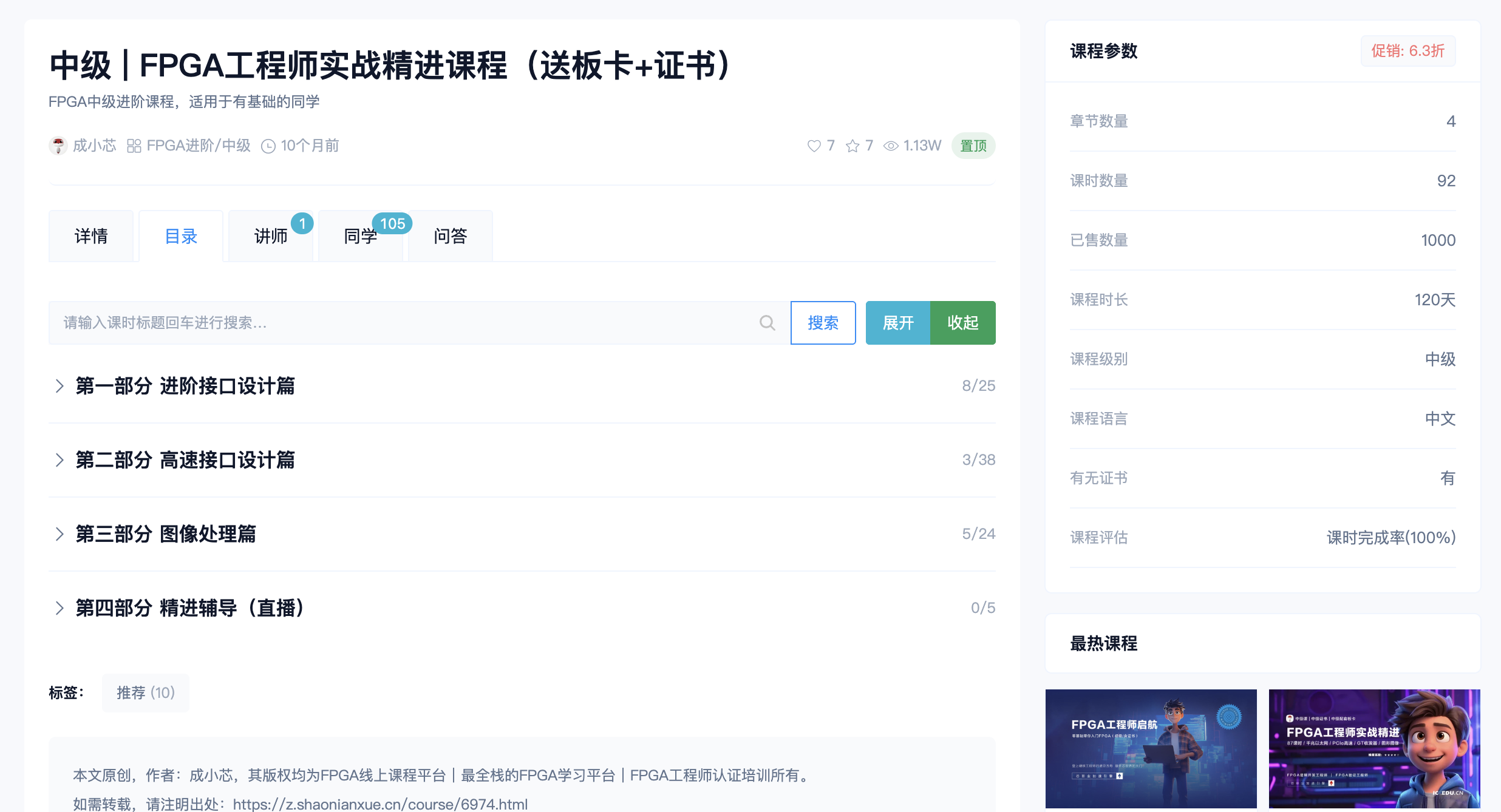 中级课程(92课时):聚焦“Artix-7高速接口开发”,直接对接行业需求: