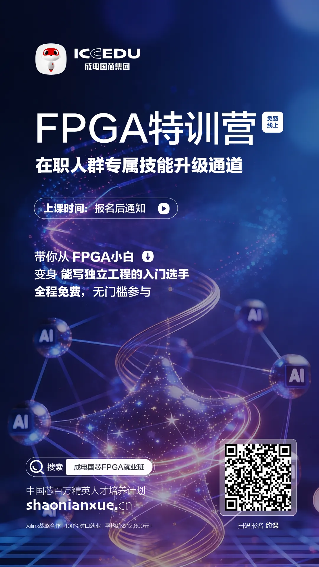 可以参加第二期FPGA免费特训营~扫码报名即可