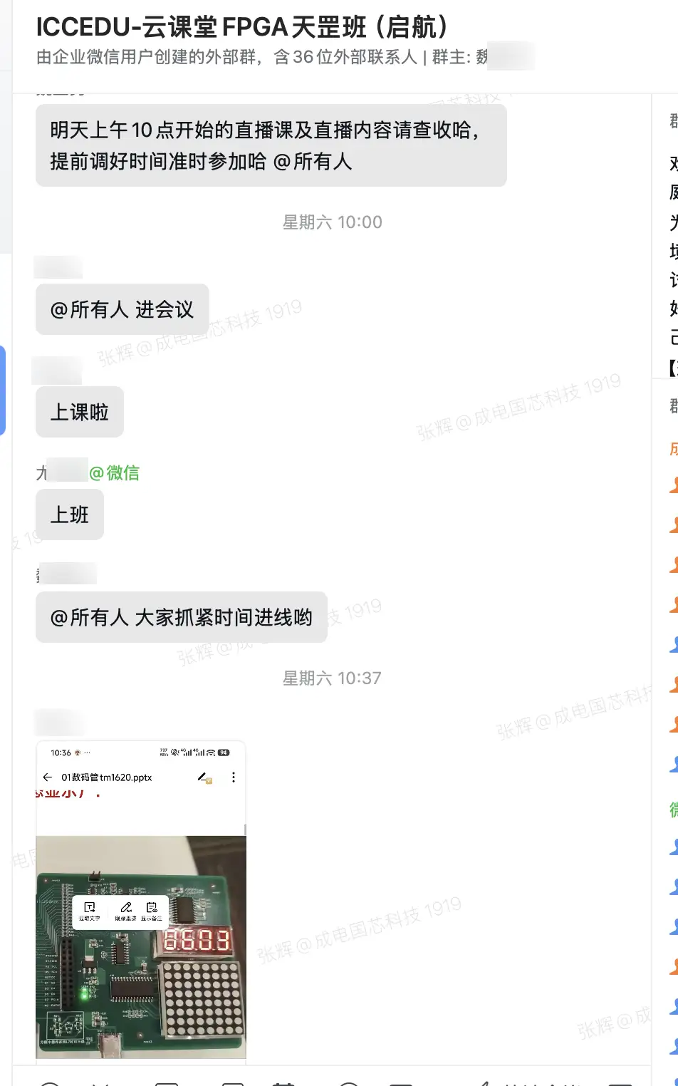 线上学习的核心痛点,莫过于“遇坑无人解、疑问积成堆”。而成电国芯FPGA云课堂打造的1v1专属辅导群,彻底打破了这一壁垒——这里没有冰冷的自动回复,只有资深工程师讲师的实时对接;没有泛泛而谈的解答,只有针对性的精准指导,成为学员假期学习的“定心丸”。