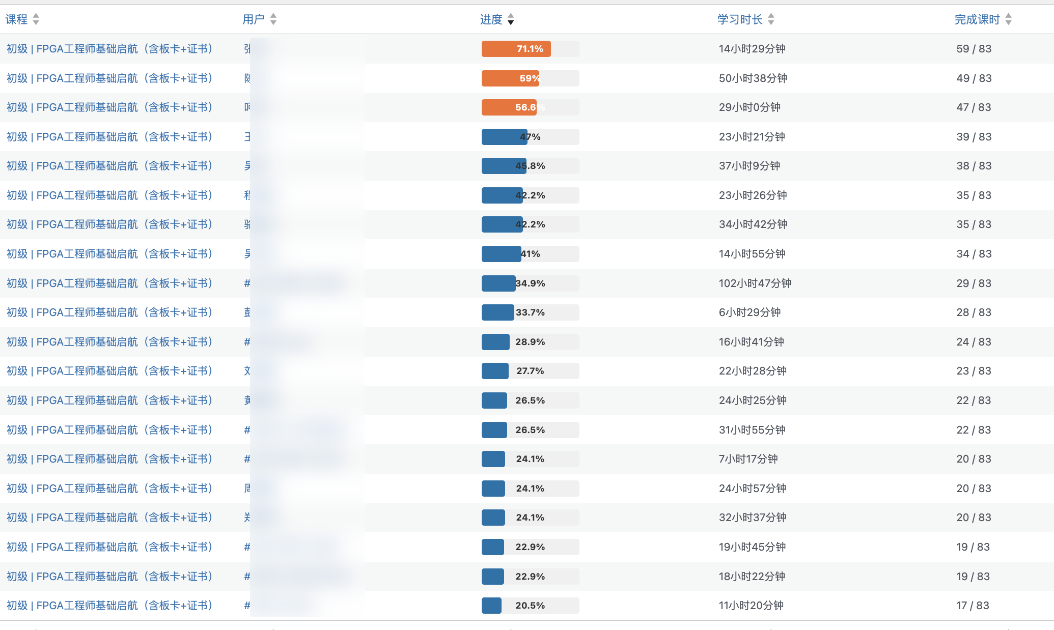 后台学习数据勾勒出动人的奋进图景:超90%的学员每日按时完成录播课程学习,其中近60%的学员会额外花费1-2小时钻研拓展内容;Verilog编码、Vitis工具实操、时序优化等核心模块的练习打卡率稳居高位,不少学员提交的作业被评为“优秀案例”,在班级内分享交流;更有学员自发组建学习小组,制定每日4-6小时的学习计划,从基础语法到企业级项目,逐模块攻坚,互相监督、彼此赋能。