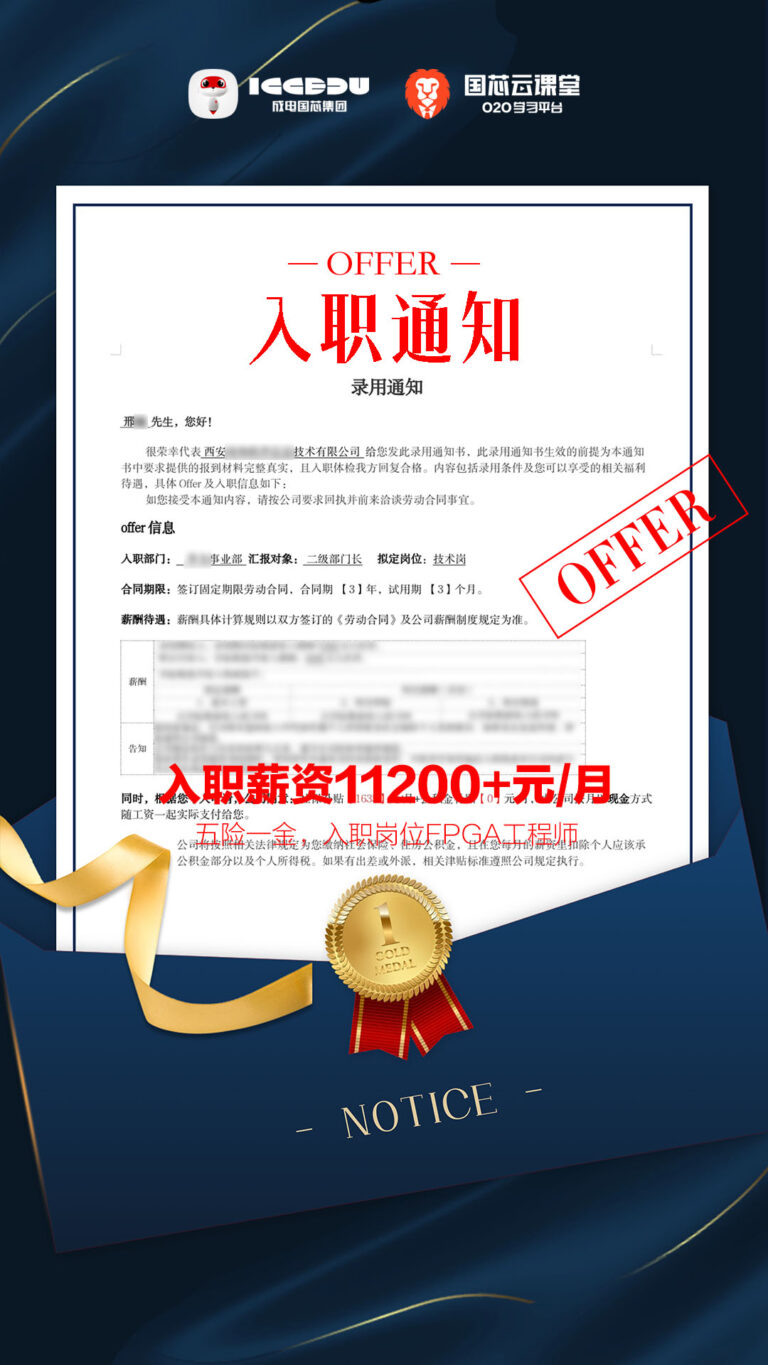 成电国芯从数字电路、Verilog零基础开始,配套预科补弱,4个月系统培养,2026大量零基础学员成功入职重庆FPGA岗位。